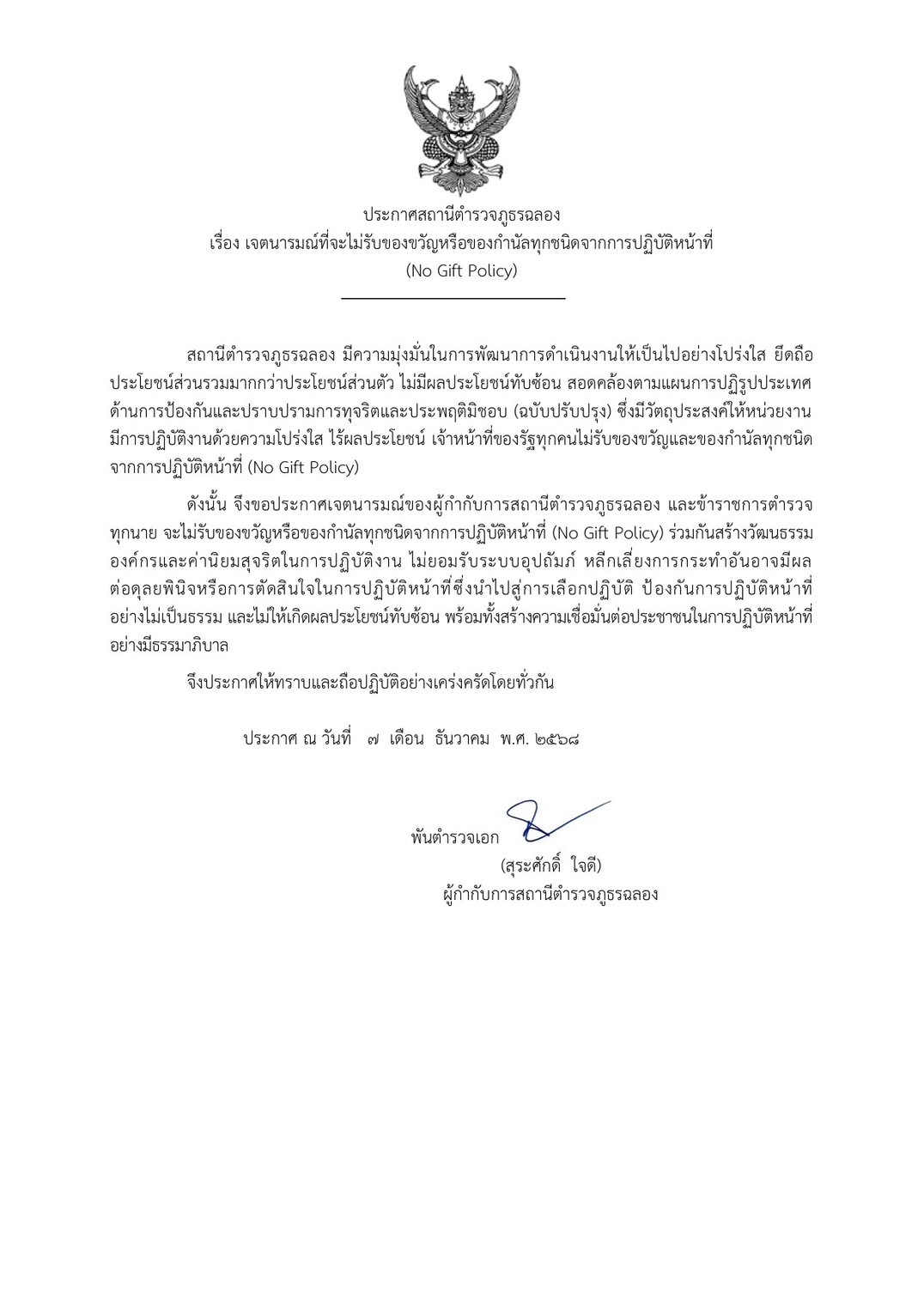 ประกาศนโยบาย No Gift Policy