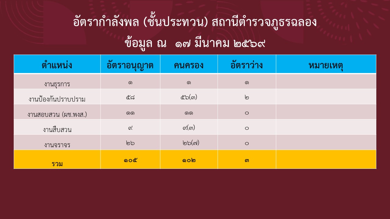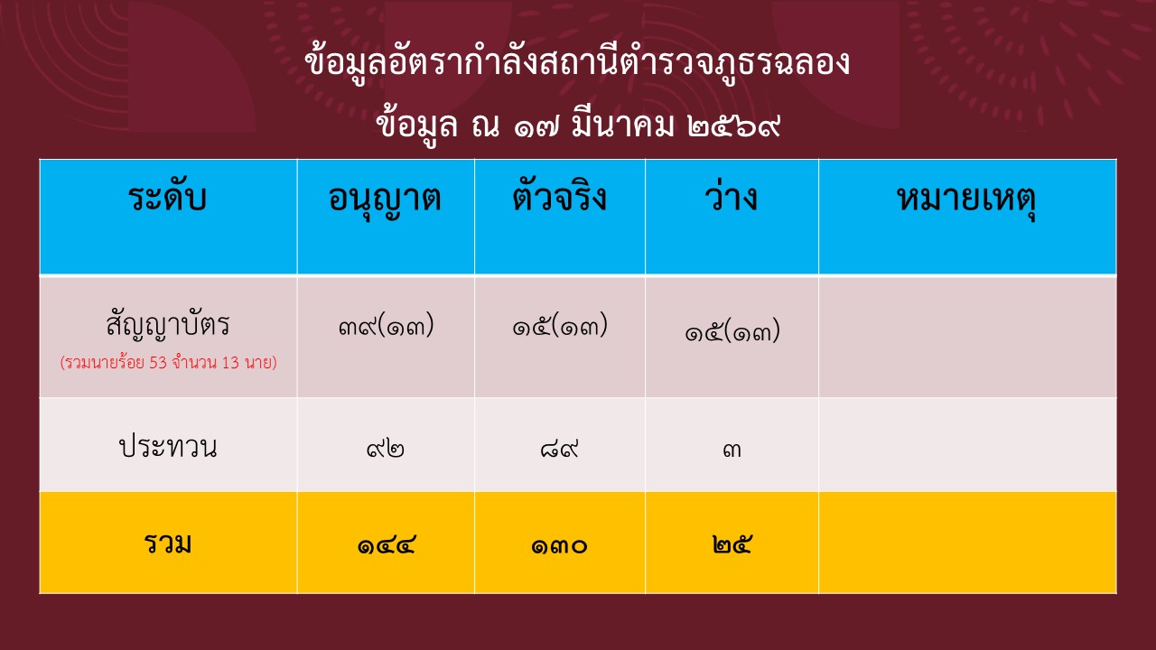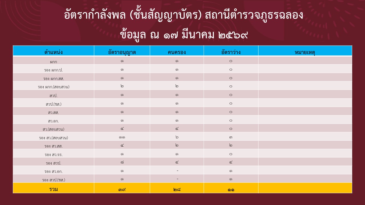 ข้อมูล ณ วันที่ 17 มีนาคม 2569